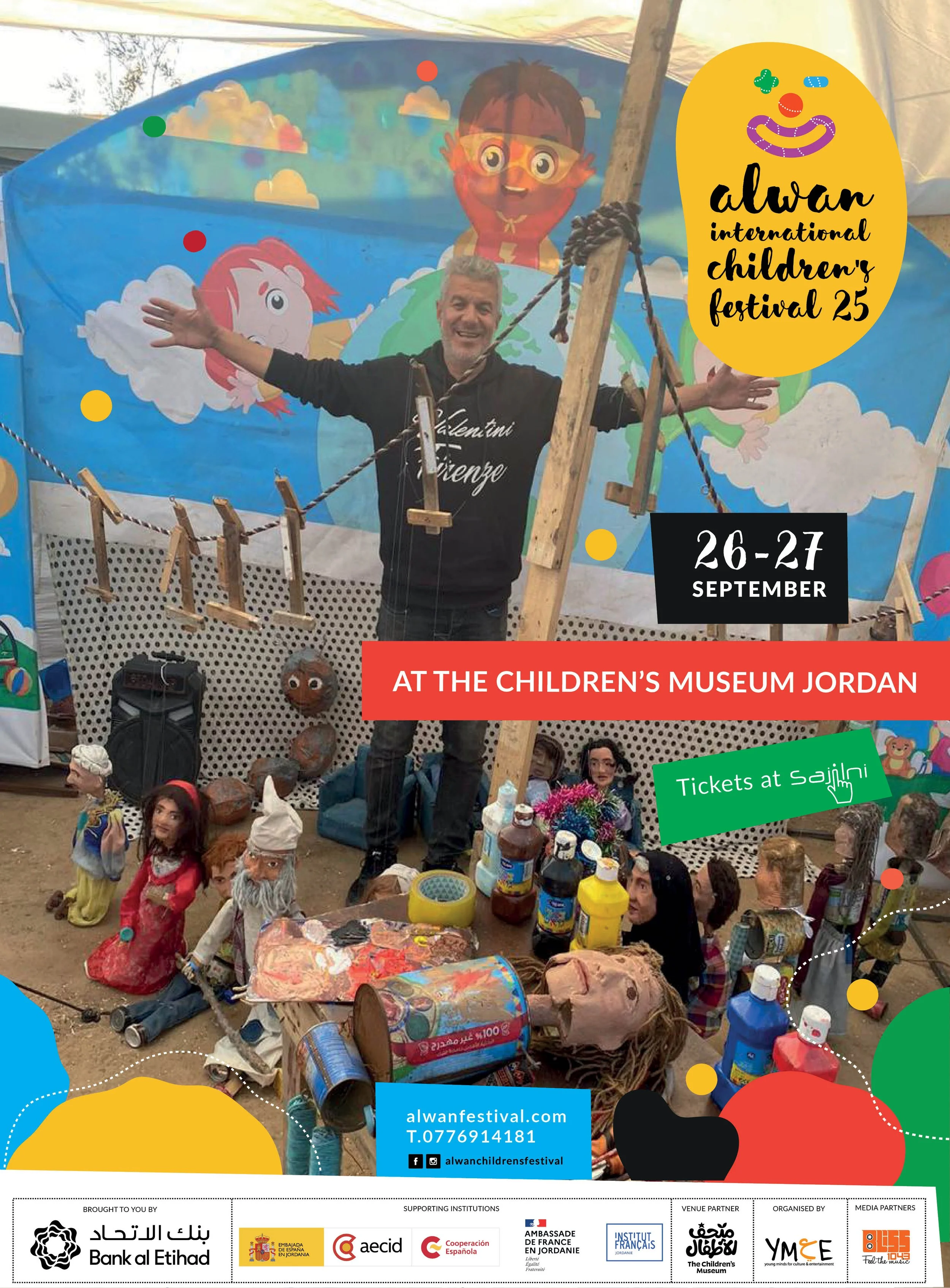 In 2024 we decided to cancel the festival because our hearts were too heavy with the ongoing genocidal war on Gaza. Instead of holding Alwan in Amman, we diverted our efforts to Gaza where we worked with the Edward Said National Conservatory of Music on delivering the Alwan Gaza Initiative; an entertainment programme for children in displaced areas combining street theatre, musical performances, puppetry, circus and more. Over two and a half months Alwan Gaza reached thousands of children in Nuseirat, Deir Al Balah, Khan Younis, Mawasi and was finally able to also reach Jabalia when there was a temporary truce. The aim of the programme was not only to bring a glimpse of joy to children traumatised by the atrocities of the Israeli occupation, but to also support the livelihoods of the artists that we worked with. You can see more about our initiative on our page and on this video link. The genocidal war on Gaza has not ended and our hearts are heavier than ever, yet we will resume our festival this year with the responsibility of giving our children what they deserve. Through the festival we will continue our support to artists from Palestine as we are proud to host the amazing talents of the Palestine Circus School from Ramallah as well as the unique puppets of Mahdi Karera from Gaza which we were miraculously able to bring out to Jordan.